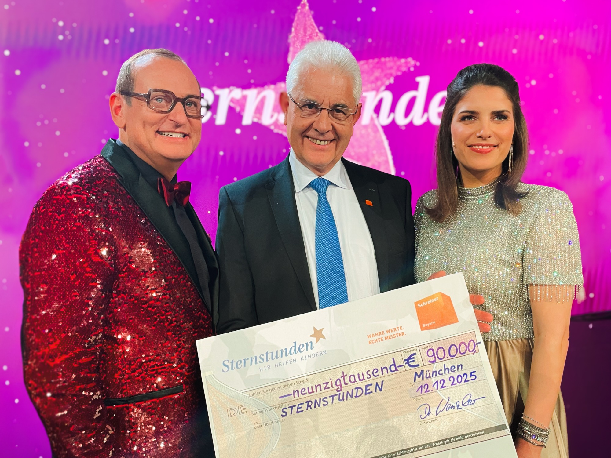 Die gesamte Spendensumme aller teilnehmenden Innungsschreiner wurde durch den Fachverband am 12.12.2025 im Rahmen der Sternstunden-Gala an den Bayerischen Rundfunk übergeben. Insgesamt kamen beeindruckende 90.000,00 € zusammen.